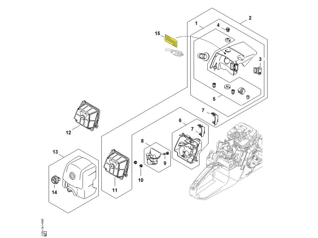 MS 361 / I - kryt, vzduchový filter / Náhradný diel číslo: 2, Súprava, obsahuje diely č.: 1,3,4,5,7,11