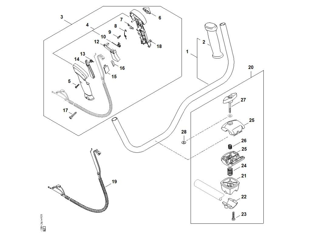 FS 130 / J - dvojručná rukoväť / Náhradný diel číslo: 20, Držiak rúrkovej rukoväte, obsahuje diely č.: 21,22,23,24,25,26,27