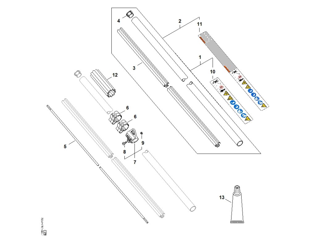FS 130 / K - násada / Náhradný diel číslo: 2, Násada Ø 25,4 mm x 1,496 m, obsahuje diely č.: 3,4,11