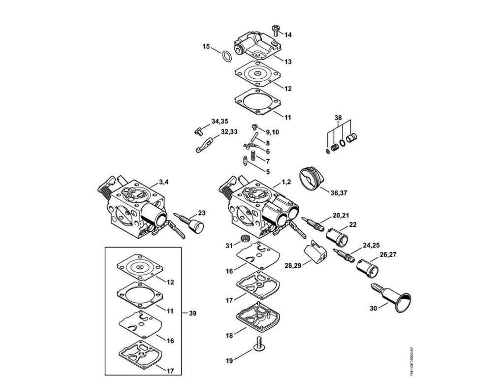 MS 291 / Karburátor c1q-s246, c1q-s252, c1q-s211, c1q-s178 / Náhradný diel číslo: 39, Súprava dielov karburátora, obsahuje diely č.
