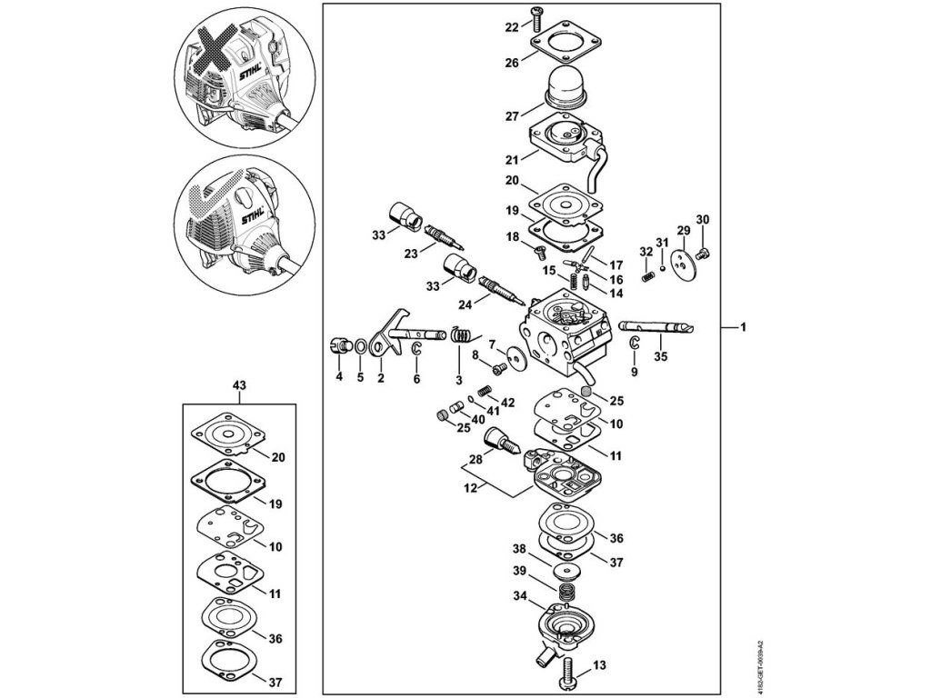 HT 131 / Karburátor c1q-s98 ⇥ 5 08 571 577 (44.2008) / Náhradný diel číslo: 43, Súprava dielov karburátora, obsahuje diely č.: 10,11,19,20,36,37