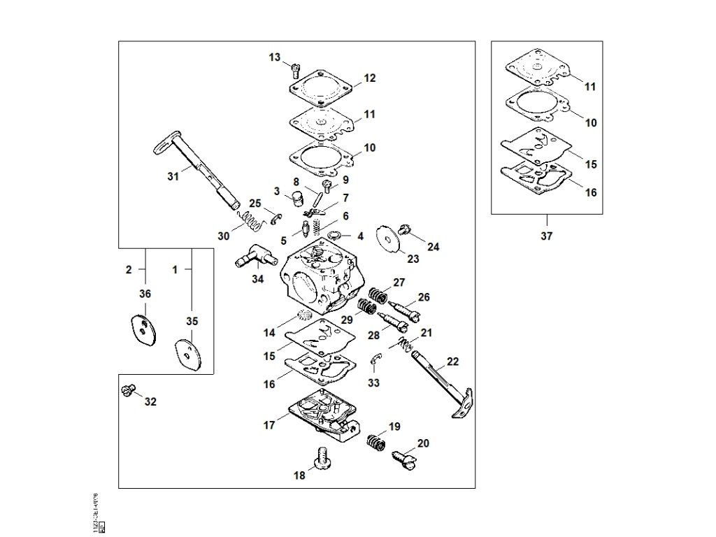 MS 250 / Karburátor wt-215, wt-286 (17.2003) / Náhradný diel číslo: 37, Súprava dielov karburátora, obsahuje diely č.: 10,11,15,16