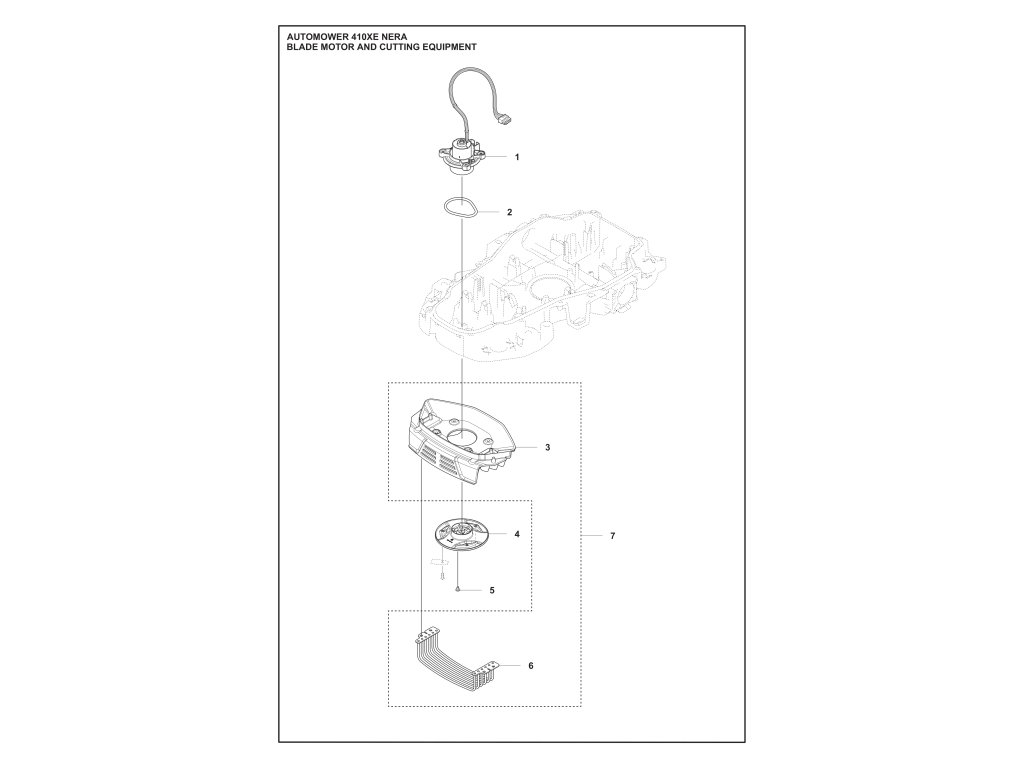 Automower® 410XE NERA / Kosiaci motor a rezné zariadenie / Náhradný diel číslo: 1, Zostava zadného rezacieho motora