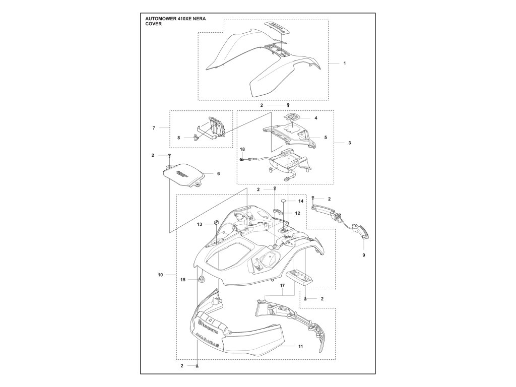 Automower® 410XE NERA / Kryt / Náhradný diel číslo: 1, Kryt ASSY Sada horného krytu