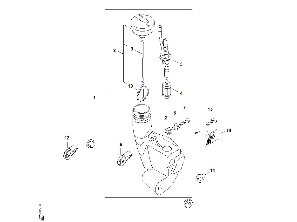 FS 45 C-E / L - palivová nádržka / Náhradný diel číslo: 8, Uzáver nádržky, obsahuje diely č.: 9,10