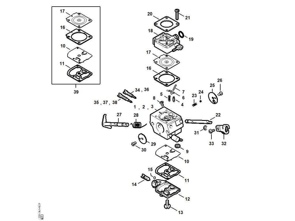 Fs 120 / M - karburátor 4134/21, 4134/22, 4134/23 / Náhradný diel číslo: 1, Karburátor 4134/21, obsahuje diely č.