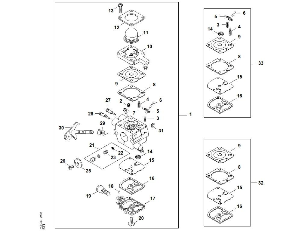 FS 55 / M - karburátor 4140/31 / Náhradný diel číslo: 32, Súprava dielov karburátora, obsahuje diely č.: 8,9,15,16