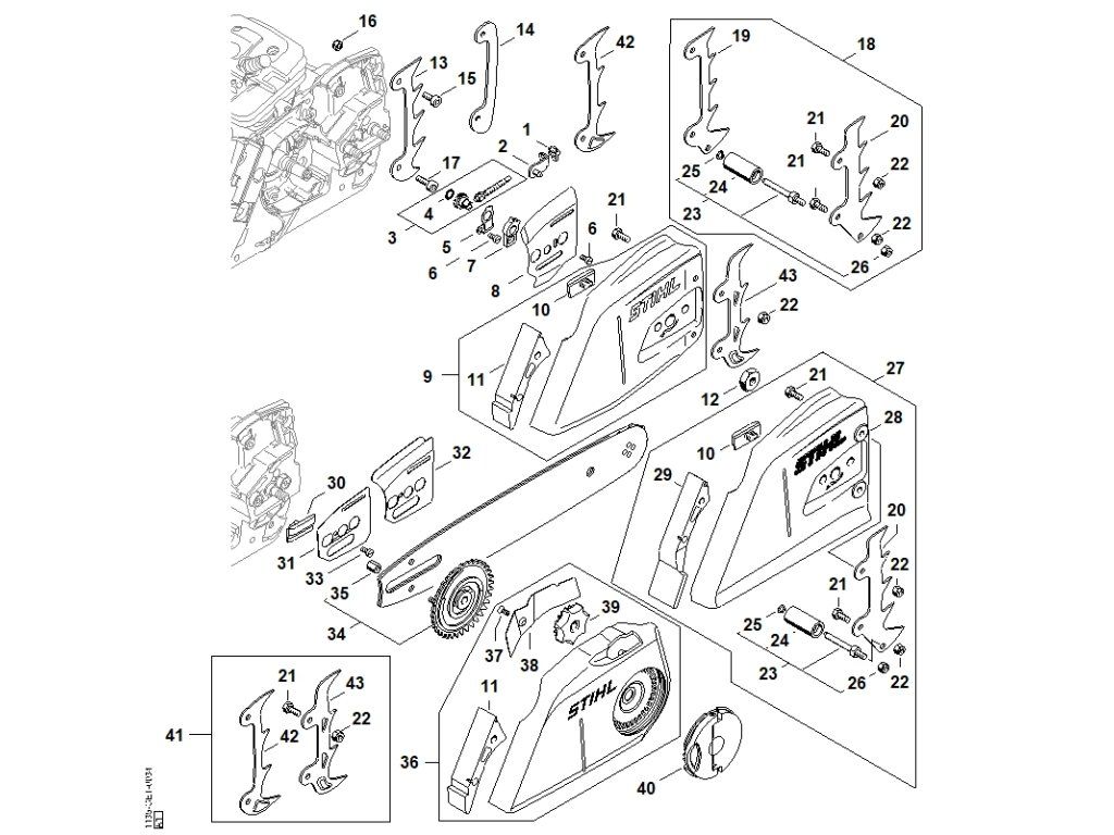 MS 361 / M - napínacie zariadenie reťaze / Náhradný diel číslo: 41, Ozubený doraz, obsahuje diely č.: 21,22,42,43