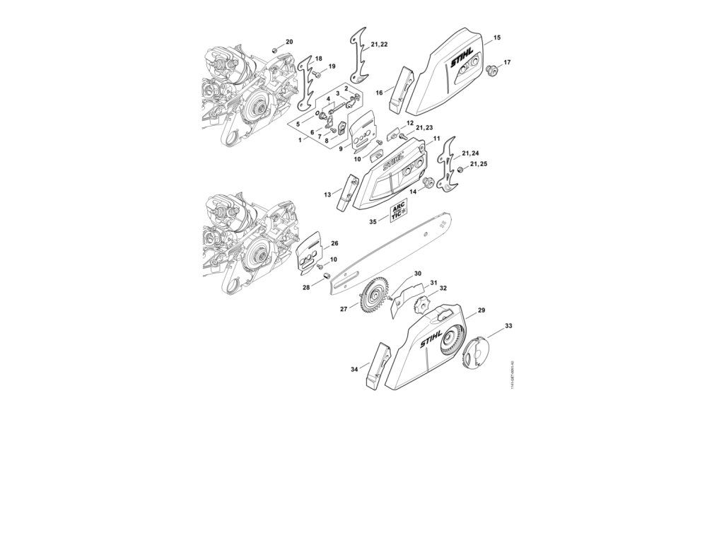 Napínacie zariadenie reťaze, kryt reťazového kolesa / Náhradné diely Stihl
