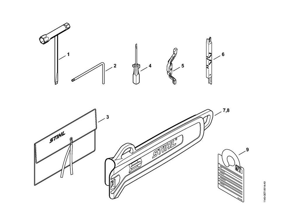 MS 201 TC-M / Náradie, zvláštne príslušenstvo / Náhradný diel číslo: -1, Súprava náradia, obsahuje diely č.: 1,2,3