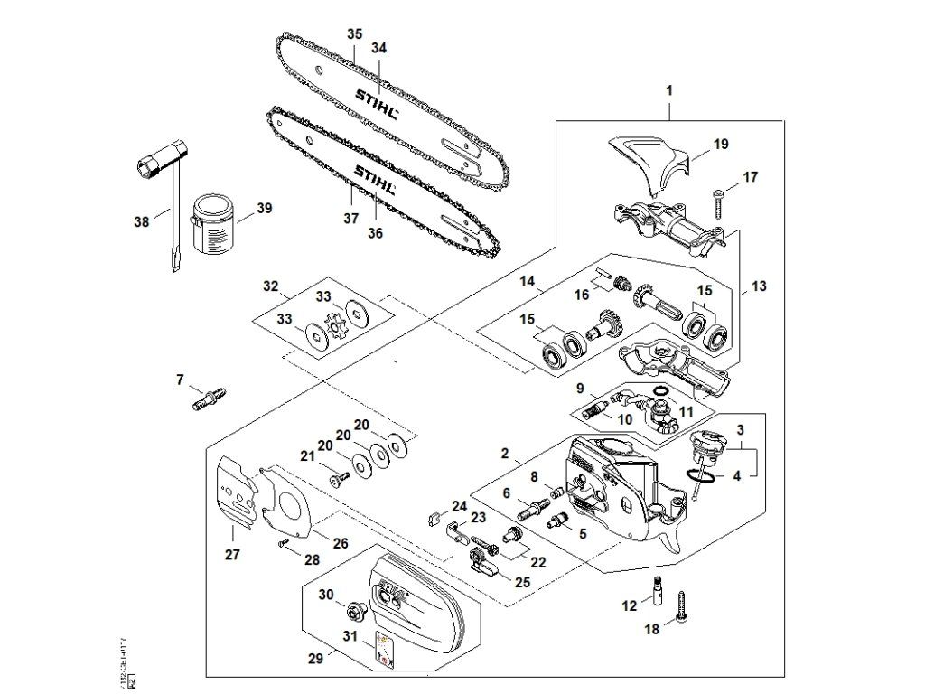 HT 133 / O - prevodovka / Náhradný diel číslo: 32, Reťazové koleso 1/4"P 8 Z, obsahuje diely č.: 33