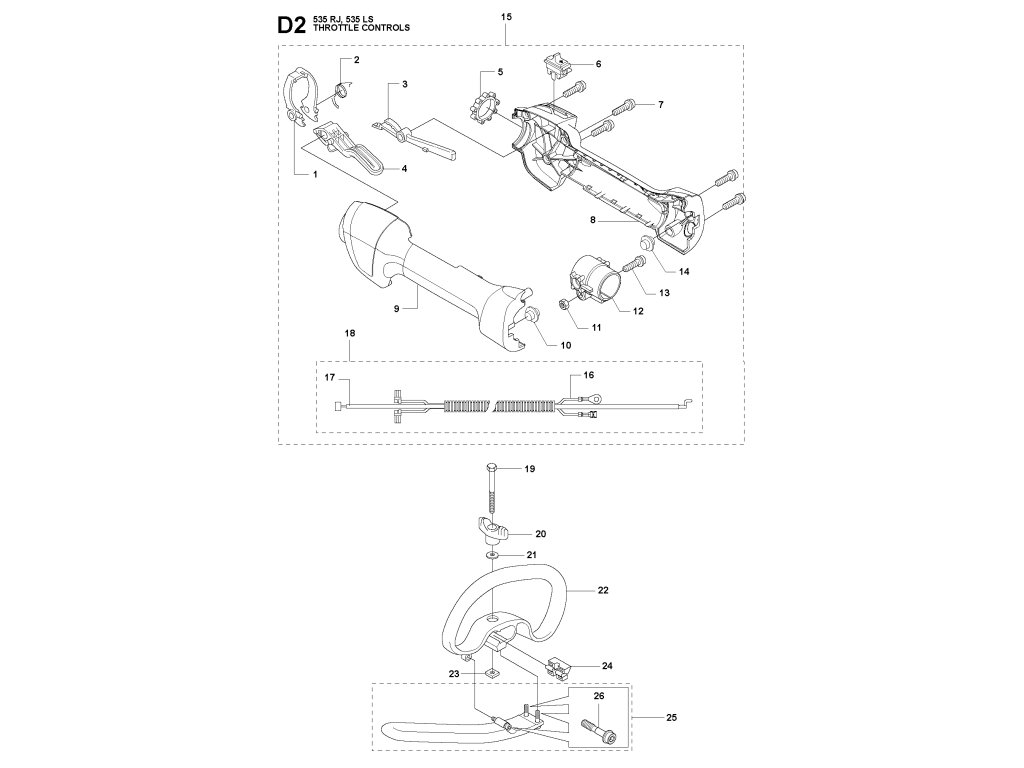 535rxt / Ovládanie plynu / Náhradný diel číslo: 25, Rukoväť vrátane skrutiek Pos. 26