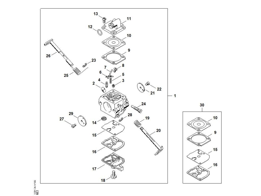 MS 180 / P - karburátor c1q-s152 / Náhradný diel číslo: 30, Súprava dielov karburátora, obsahuje diely č.: 9,10,15,16