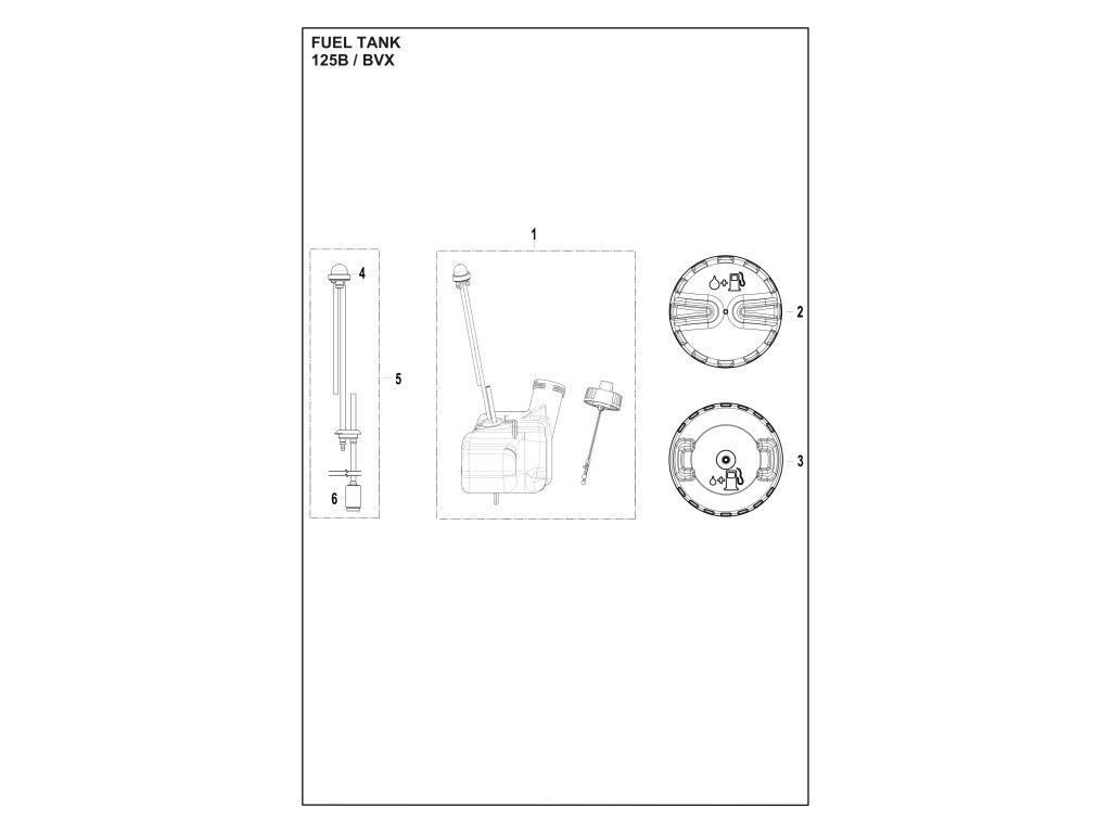 125BVx / Palivová nádrž / Náhradný diel číslo: 2, Palivový uzáver - zostava sériové číslo 202522XXXXX a nižšie prosím overte potrebu porovnaním tvaru viečka