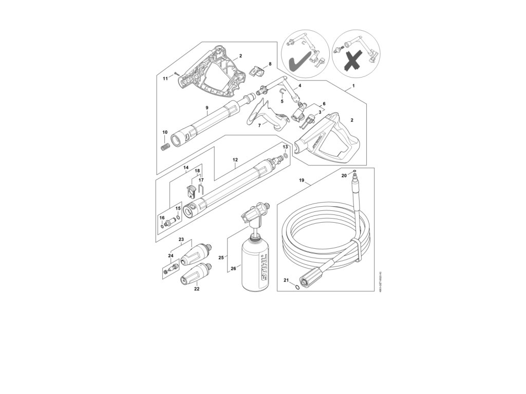 RE 90 4951 / Pištoľ, oceľová rúra / Náhradný diel číslo: 14, Dýza, obsahuje diely č.: 15,16,17