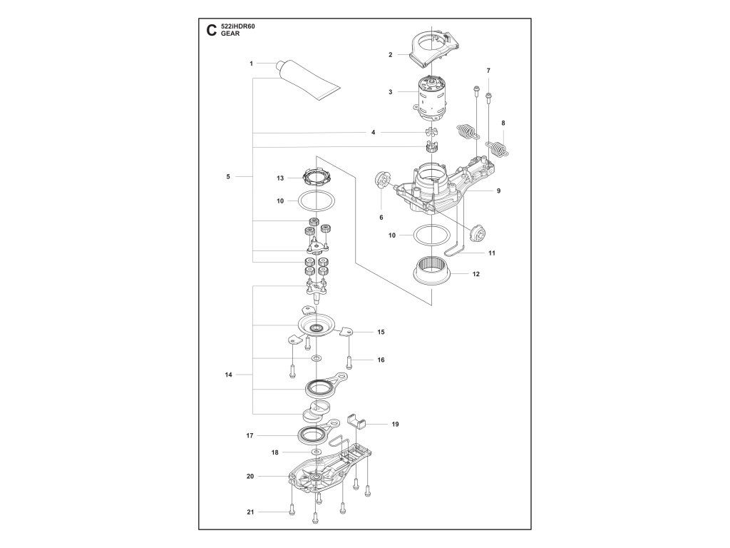 522iHDR60 bez akumulátora a nabíjačky / Prevody / Náhradný diel číslo: 11, Ochranné oblečenie