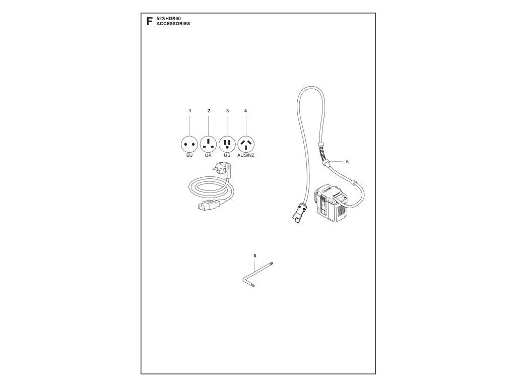 522iHDR60 bez akumulátora a nabíjačky / Príslušenstvo / Náhradný diel číslo: 2, Kábel UK
