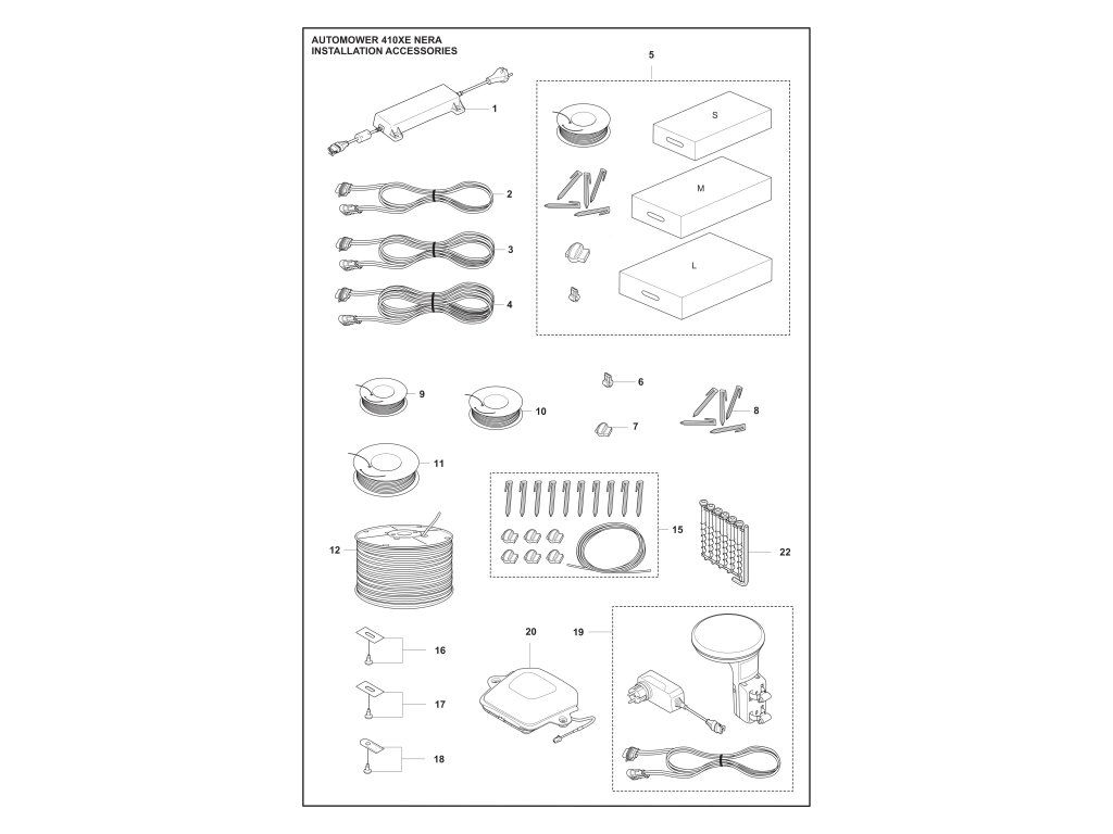 Automower® 410XE NERA / Príslušenstvo pre montáž / Náhradný diel číslo: 5, Inštalačná sada L Drôt 400 m, Sponky 600 ks, Konektory 5 ks, Spojky 5 ks