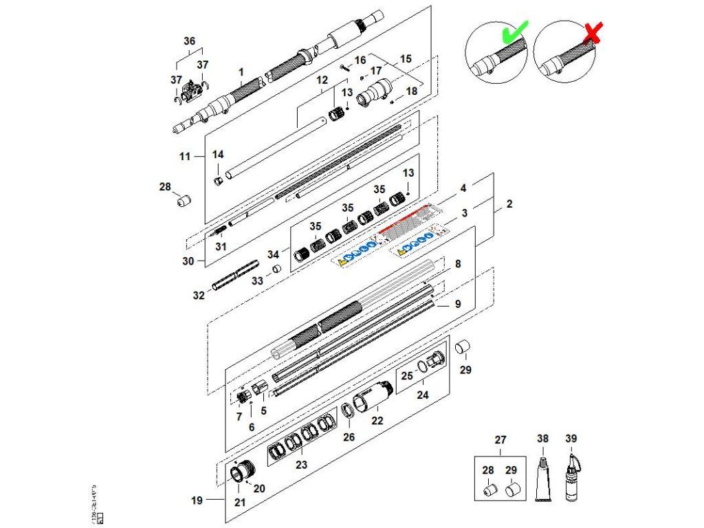 HT 105 / Q - násada / Náhradný diel číslo: 27, Súprava uzáverov, obsahuje diely č.: 28,29