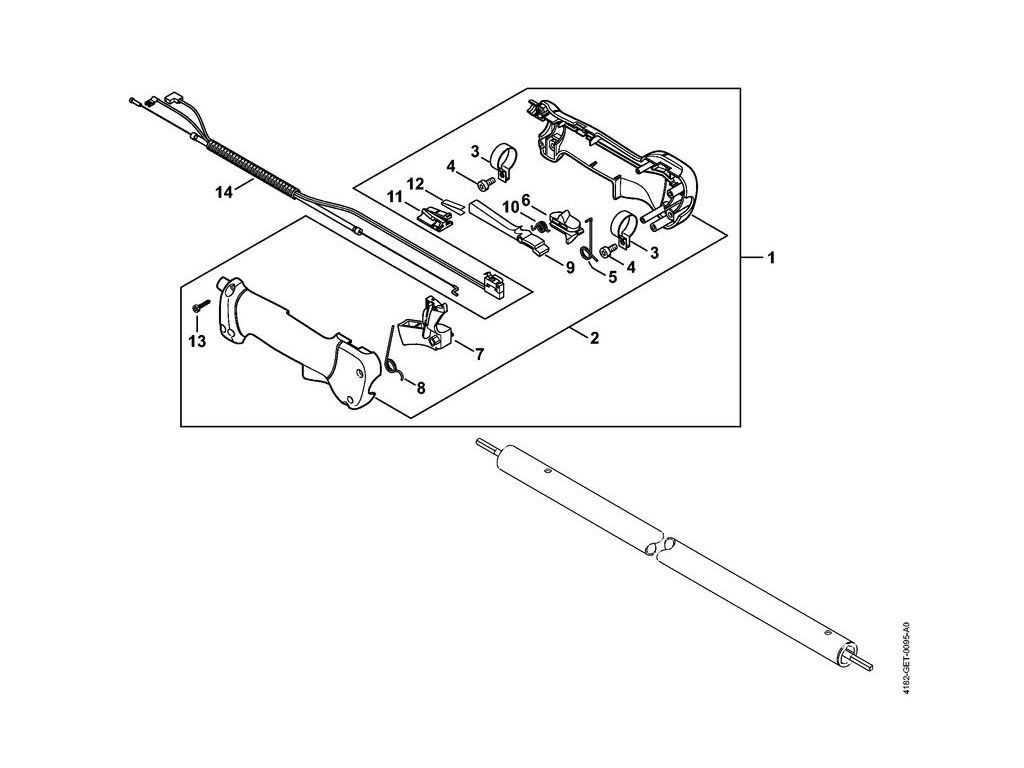 HT 100 / Rukoväť / Náhradný diel číslo: 1, Ovládacia rukoväť, obsahuje diely č.: 2,3,4,5,6,7,8,9,10,11,12,13