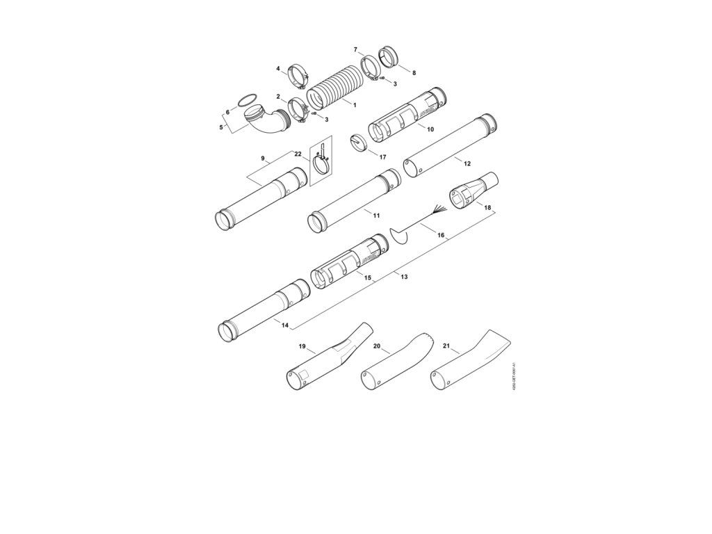 BR 550 / S - vlnová hadica, fúkacia rúra / Náhradný diel číslo: 9, Fúkacia rúra, obsahuje diely č.: 22