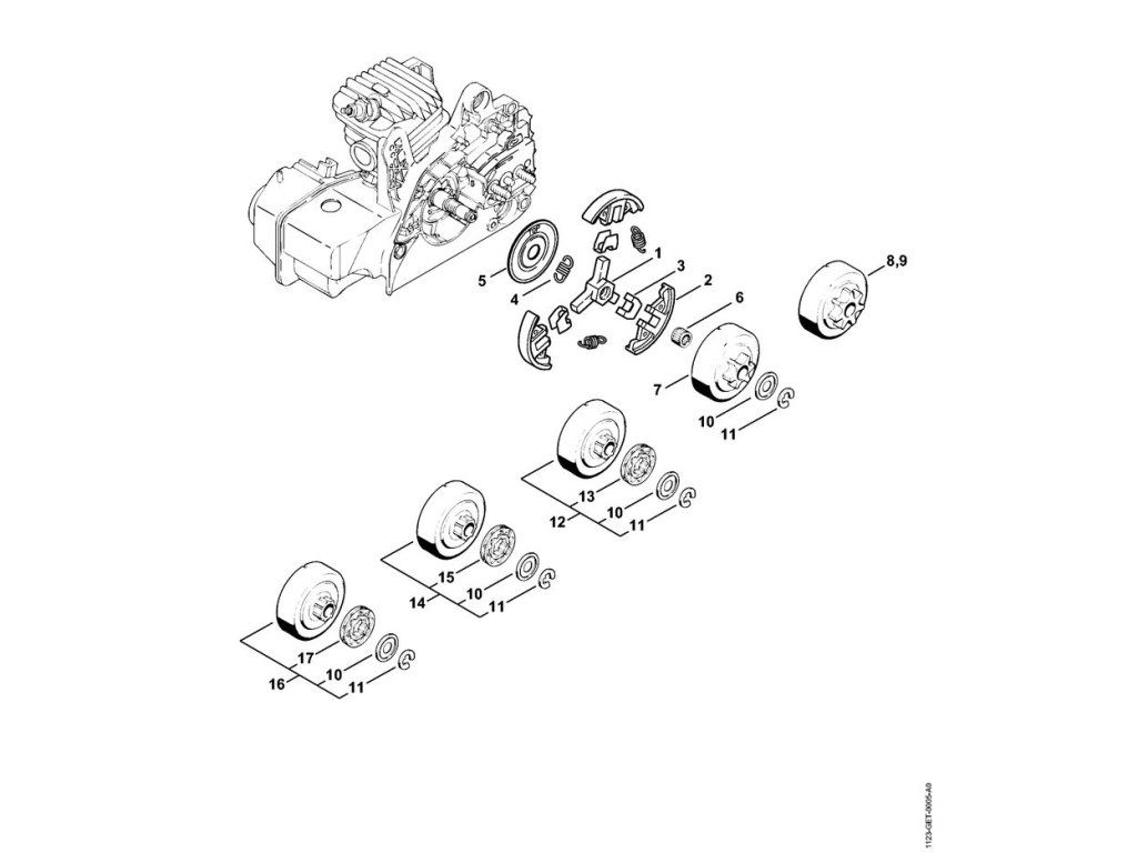 MS 250 / Spojka / Náhradný diel číslo: 14, Klemmpistikute komplekt AKS 011.0 (10 tk), obsahuje diely č.: 10,11,15