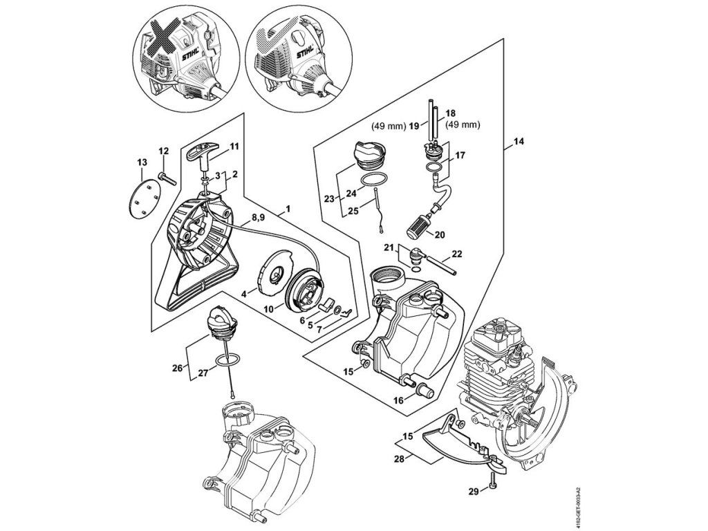 Štartovacie zariadenie, palivová nádržka ⇥ 5 08 571 577 / Náhradné diely Stihl