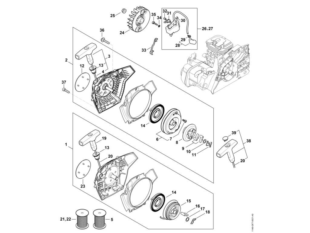 Štartovacie zariadenie, zapaľovacia sústava / Náhradné diely Stihl