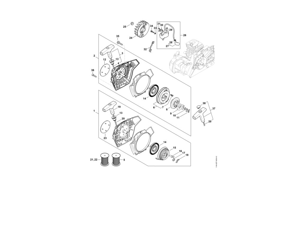 Štartovacie zariadenie, zapaľovacia sústava / Náhradné diely Stihl