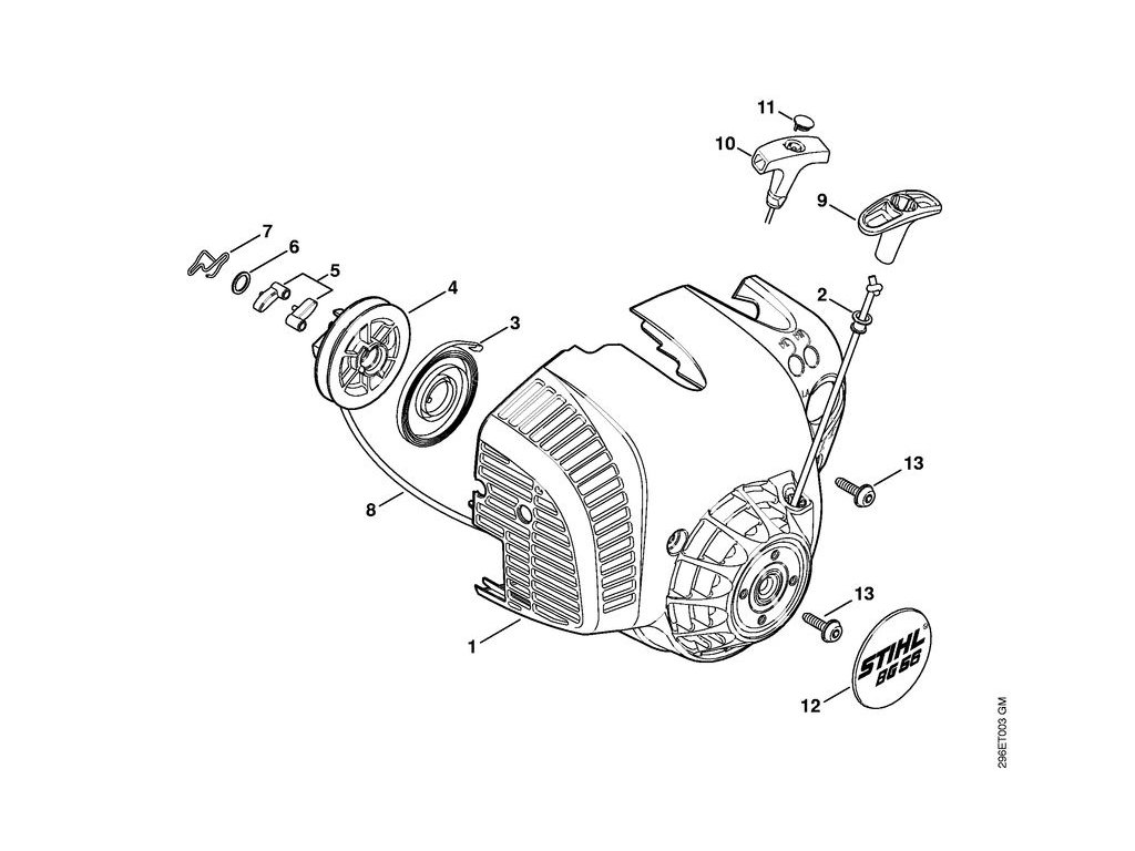 BG 56 / Štartovacie zariadenie / Náhradný diel číslo: -1, Teleso ventilátora so štartovacím zariad, obsahuje diely č.: 1,2,3,4,5,6,7,8,10,11