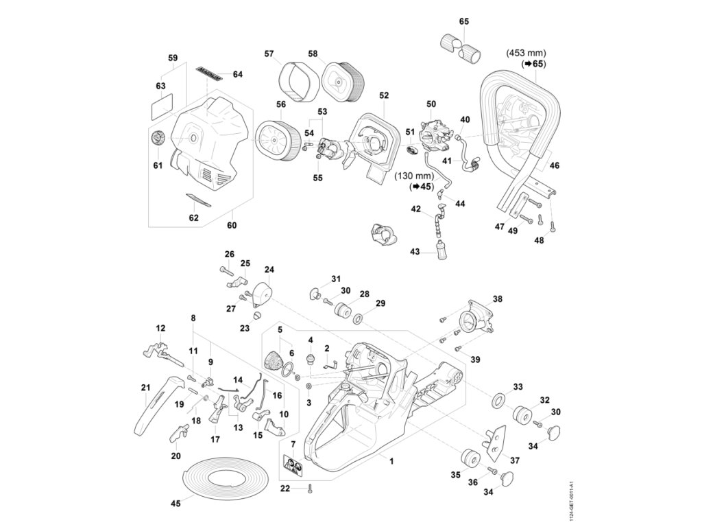 MS 881 / Teleso nádržky, filter, antivibračný systém, rúrková rukoväť ms 881 / Náhradný diel číslo: 41, Hadica