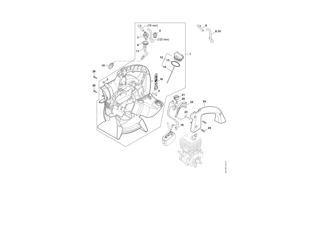 SH 56 / Teleso ventilátora vnútri sh 56 / Náhradný diel číslo: 12, Uzáver nádržky, obsahuje diely č.: 13,14