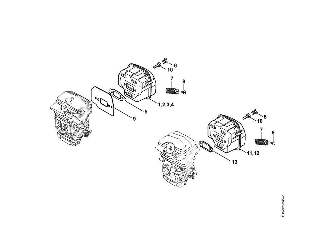 MS 231 C-BE / Tlmič výfuku / Náhradný diel číslo: 11, Tlmič výfuku, obsahuje diely č.: 6,13