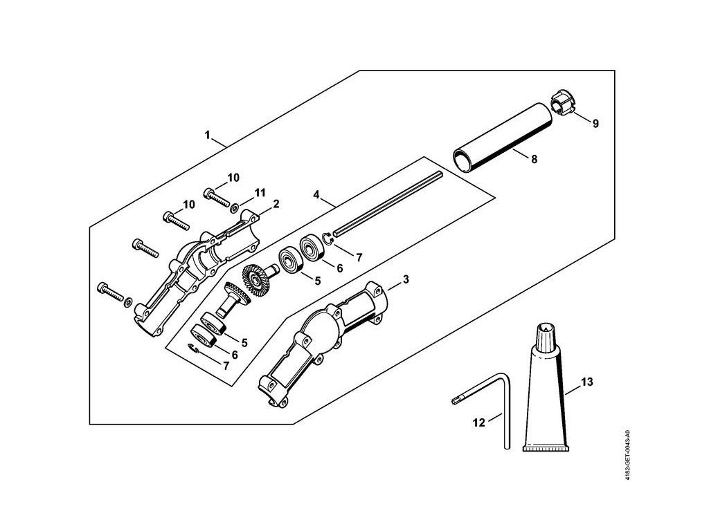 HT 131 / Uhlový prevod / Náhradný diel číslo: 1, Uhlový prevod 30°, obsahuje diely č.: 2,3,4,5,6,7,8,9,10,11