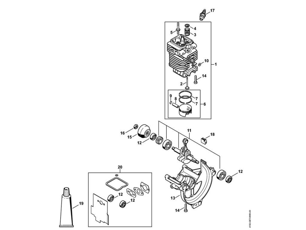 HT 100 / Valec, kľuková vaňa / Náhradný diel číslo: 20, Súprava tesnenia, obsahuje diely č.: 12