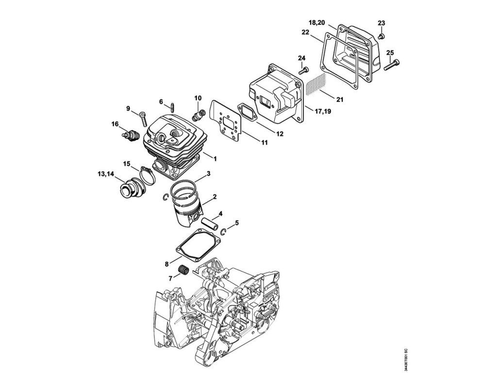PRODUCT SET / Valec, tlmič výfuku / Náhradný diel číslo: 16, Zapaľovacia sviečka STIHL ZK C 14