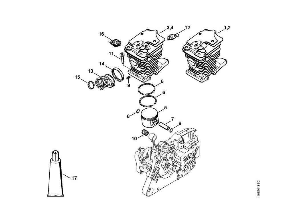 PRODUCT SET / Valec ms 270 / Náhradný diel číslo: 3, Valec s piestom Ø 44 mm, obsahuje diely č.: 5,6,7,8,9