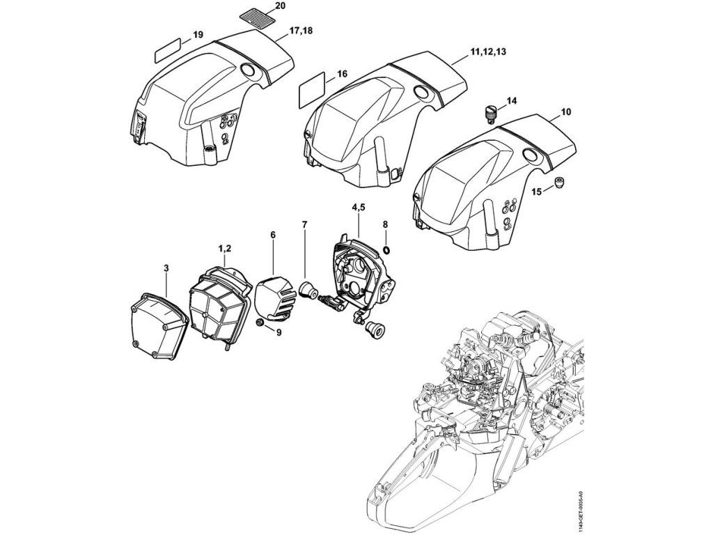 MS 362 / Vzduchový filter, kryt (27.2015),(26.2015),(18.2013),(28.2012) / Náhradný diel číslo: 7, Nárazník