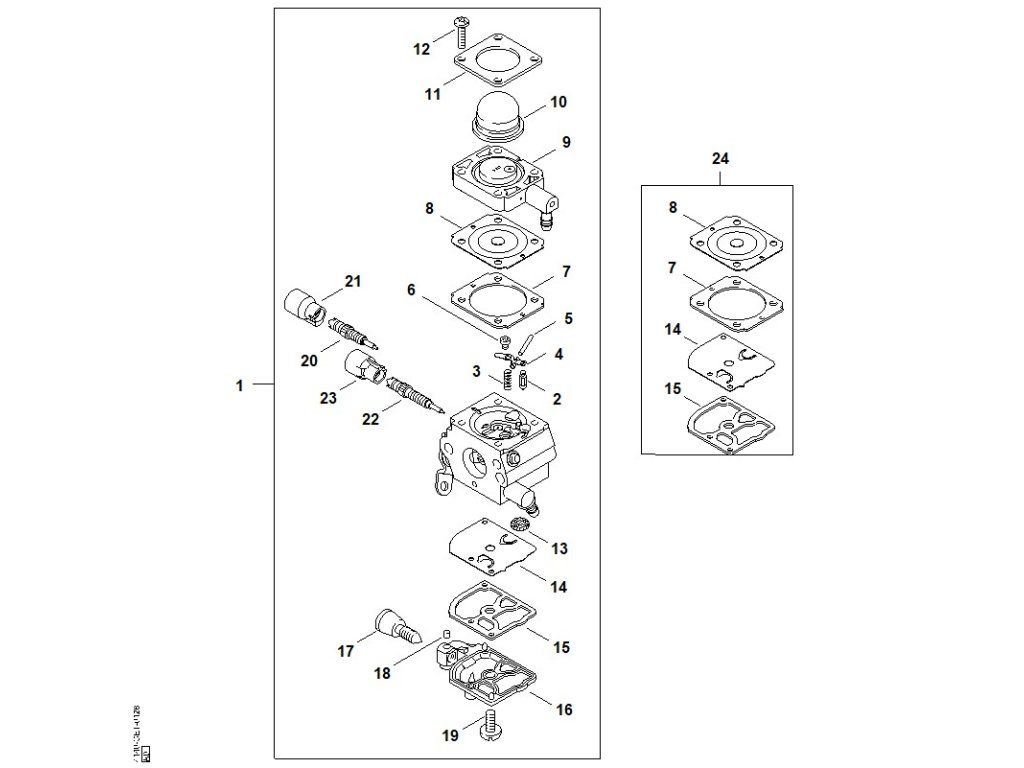 FS 55 2-MIX / W - karburátor c1q-s282 2-mix / Náhradný diel číslo: 1, Karburátor C1Q-S282C, obsahuje diely č.: 2,3,4,5,6,7,8,9,10,11,12,13,14,15,16,17,18,19,20,21,22,23