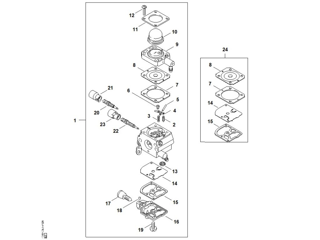 FS 55 2-MIX / W - karburátor c1q-s282 2-mix / Náhradný diel číslo: 24, Súprava dielov karburátora, obsahuje diely č.: 7,8,14,15