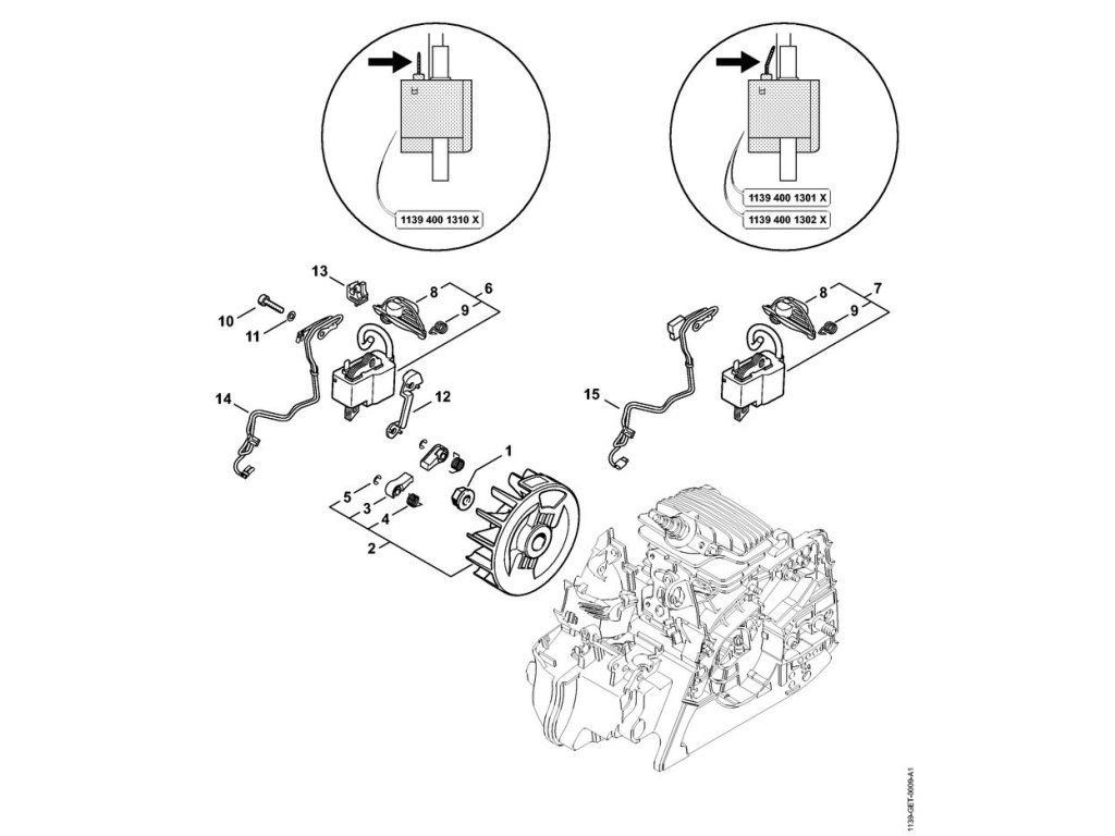 MS 211 C-BE / Zapaľovacia sústava ms 211 c-be; ms 211 c-be z / Náhradný diel číslo: 7, Zapaľovací modul, obsahuje diely č.: 8,9