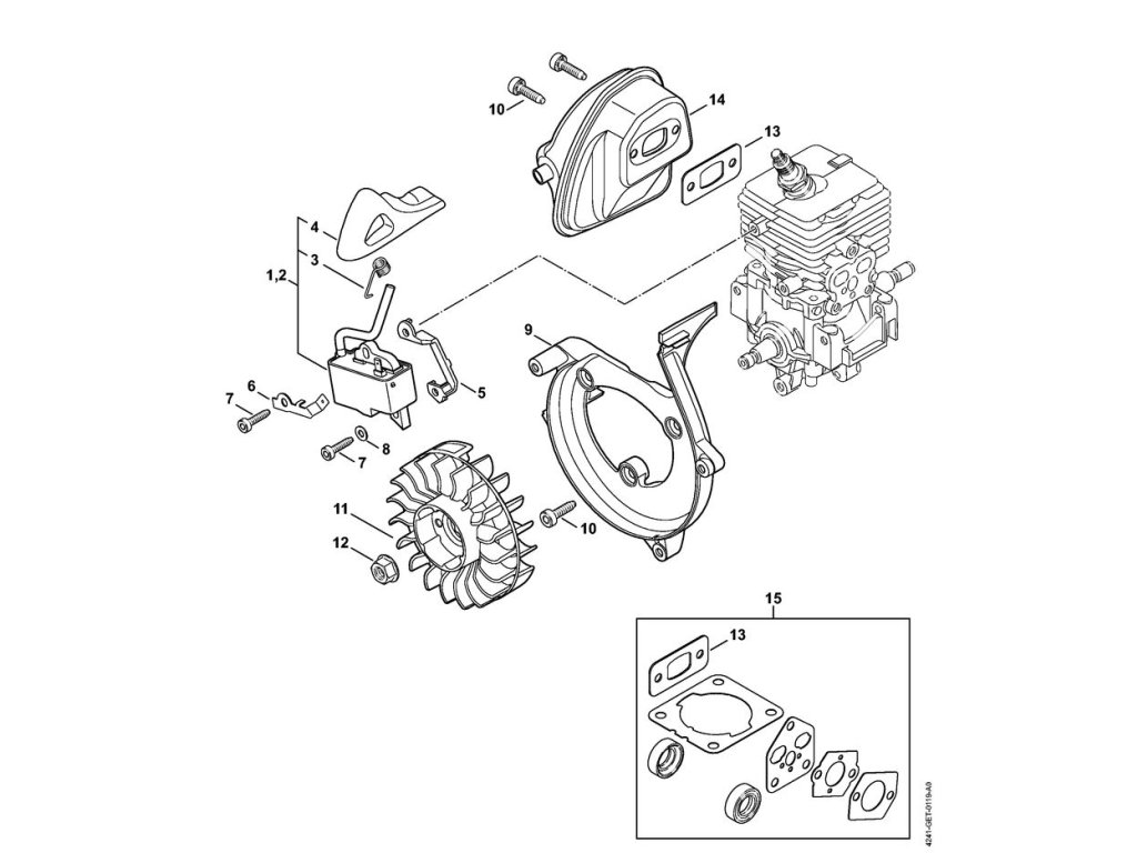 D - Zapaľovacia sústava, tlmič výfuku / Náhradné diely Stihl