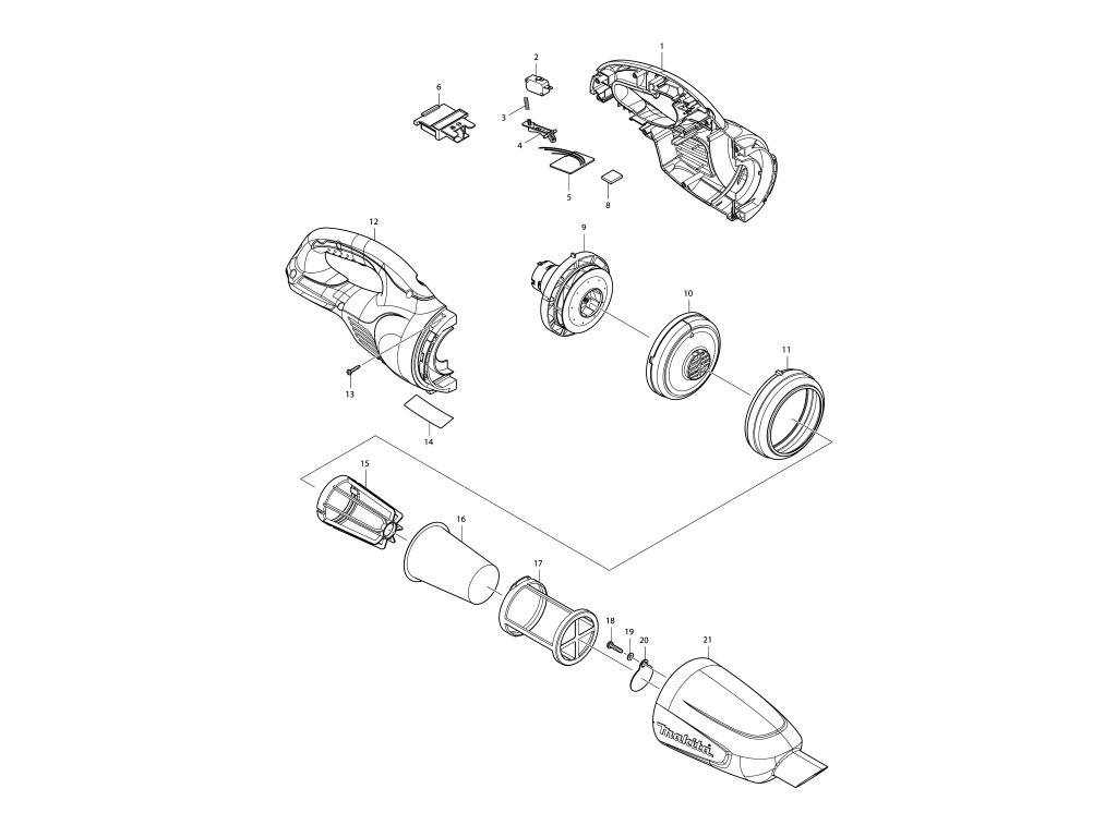 DCL180 / Náhradné diely Makita: 021 ZBERNÁ NÁDOBA DCL180 / 181 MODRÁ