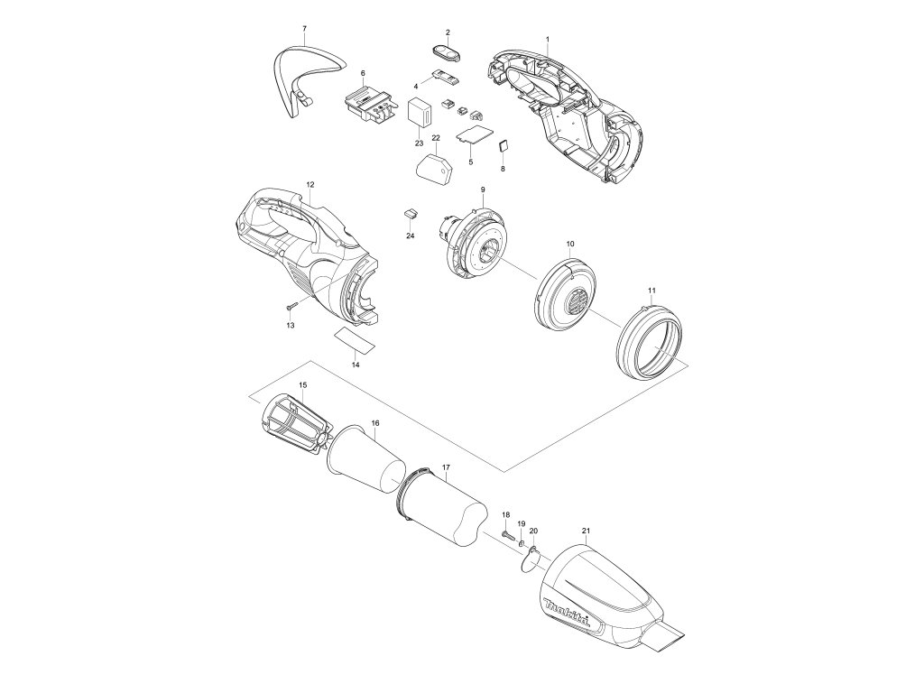 DCL181F / Náhradné diely Makita: 021 ZBERNÁ NÁDOBA DCL180 / 181 MODRÁ