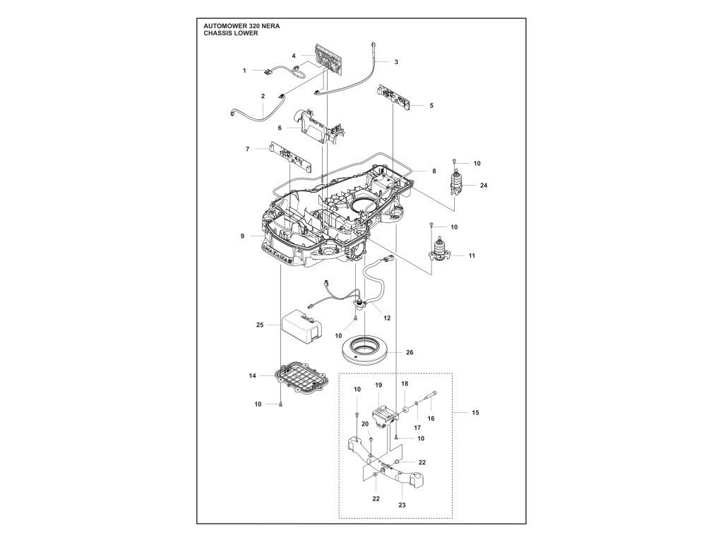 Automower® 320 NERA / Dolný podvozok / Náhradný diel číslo: 9, Konštrukcia spodná časť
