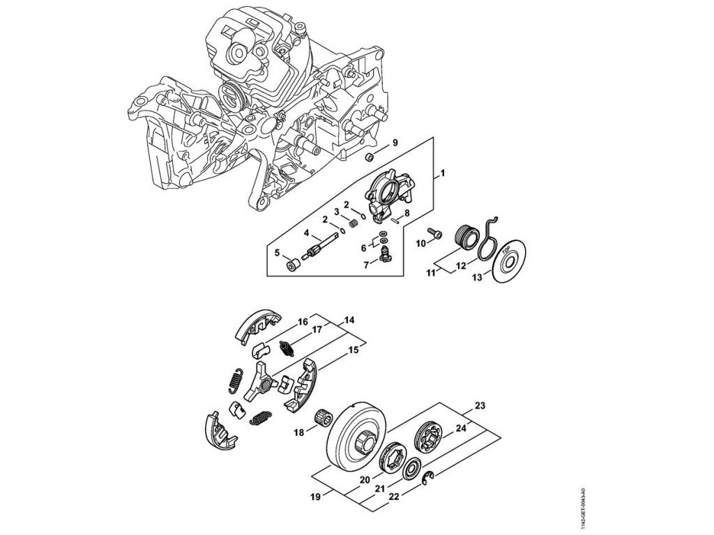 E - Olejové čerpadlo, spojka / Náhradné diely Stihl