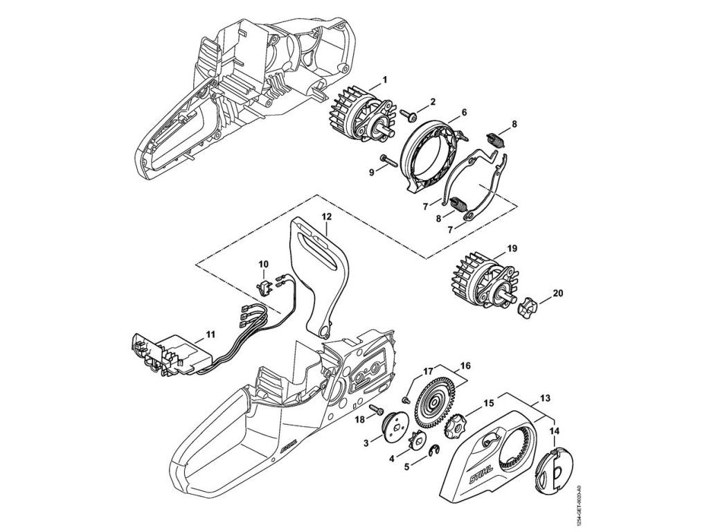 Elektromotor, elektronický modul, kryt reťazového kolesa diely 443746234 / Náhradné diely Stihl