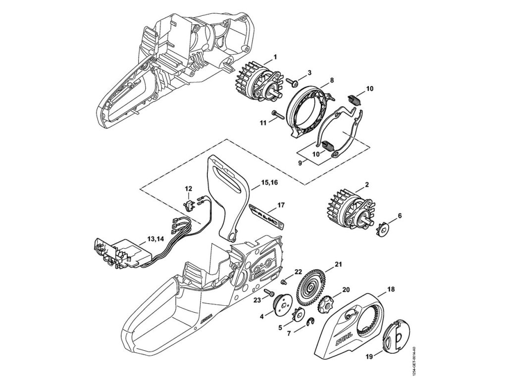 Elektromotor, elektronický modul, kryt reťazového kolesa / Náhradné diely Stihl
