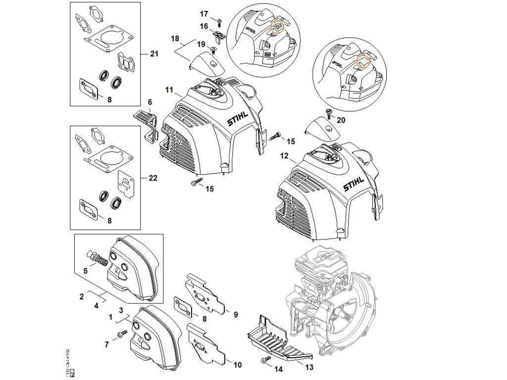 F - Tlmič výfuku, kryt / Náhradné diely Stihl