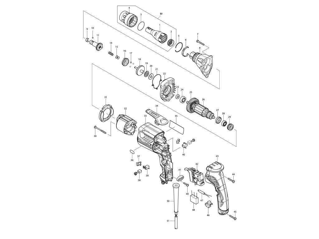 FS4300 / Náhradné diely Makita: 001 DORAZ HĹBKOVÝ KPL. NA FS2300-6300